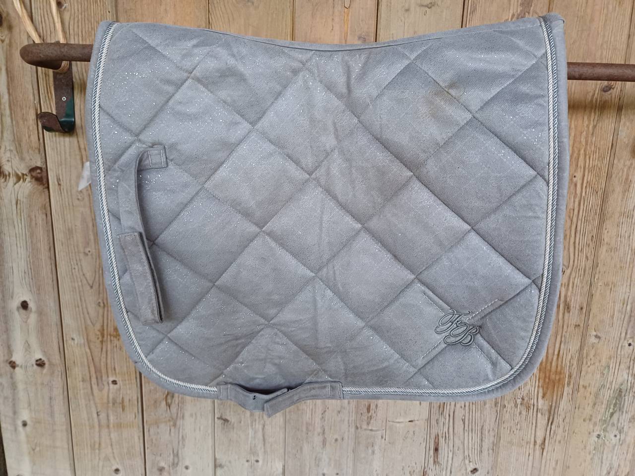Tapis de dressage taille cheval gris avec quelques paillettes