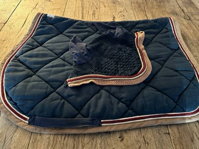 TAPIS ET BONNET CRISTINA SPORT BLEU MARINE ET BEIGE