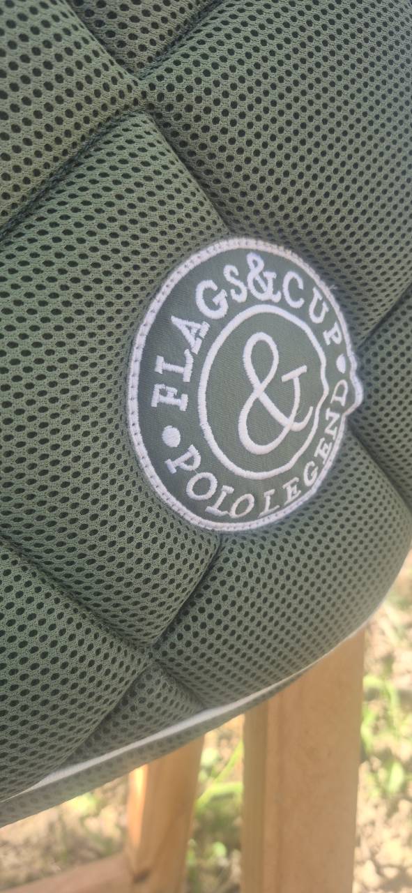 Superbe tapis Flags & Cup, coloris vert foncé élégant, matelassage classique et finition sobre.
