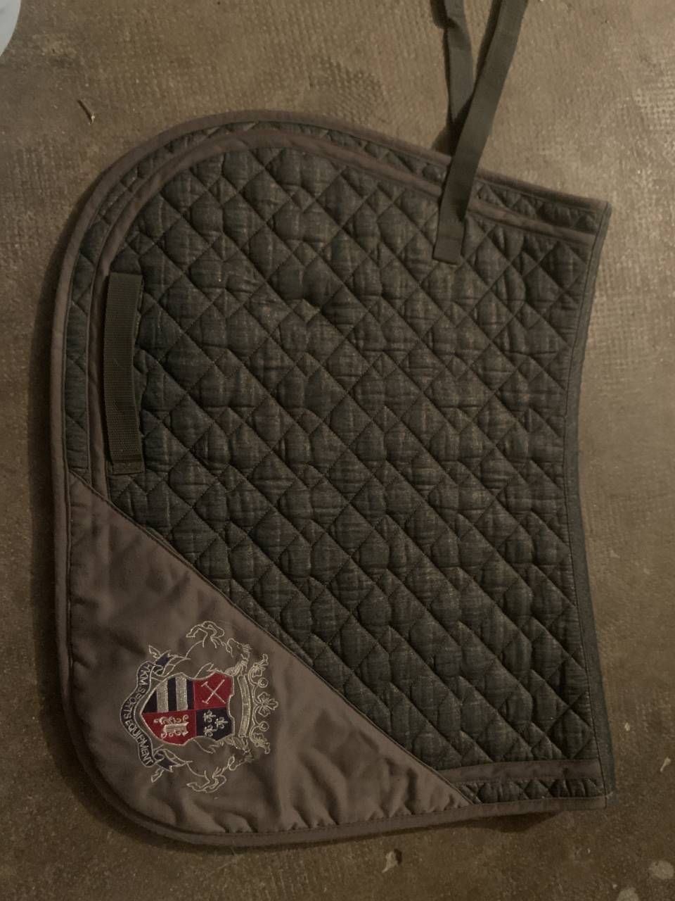 Tapis de sport gris pailletée hkm bonne état beaucoup servi taille cob ( double poney ) et va au poney de 1 m 35 ( sera lavé avant envoie)