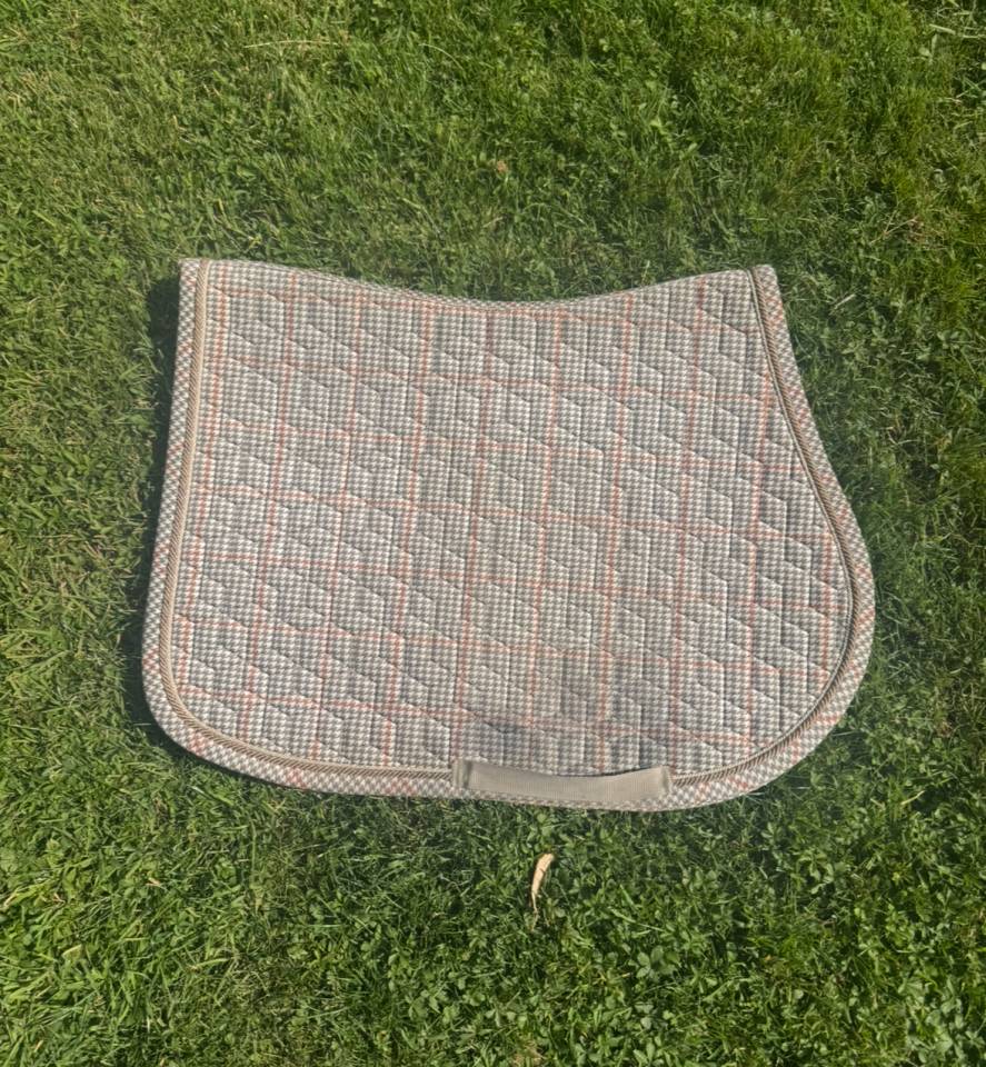 Magnifique tapis de selle Kentucky en motif pied-de-poule avec liseré beige, très élégant pour un look raffiné. Forme mixte, parfait pour l’entraînement ou la compétition.