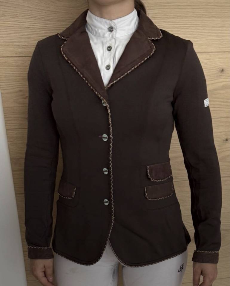 La veste de concours Animo. Confectionnée en tissu Sinergy bi-stretch, elle offre une coupe ajustée qui épouse parfaitement la silhouette tout en garantissant une liberté de mouvement optimale. Légère, résistante et douce au toucher, elle bénéficie d'un traitement idéorépellent pour une meilleure protection. Elle est dotée d'une fermeture frontale par 4 boutons et zip intérieur, ainsi que de poches latérales.