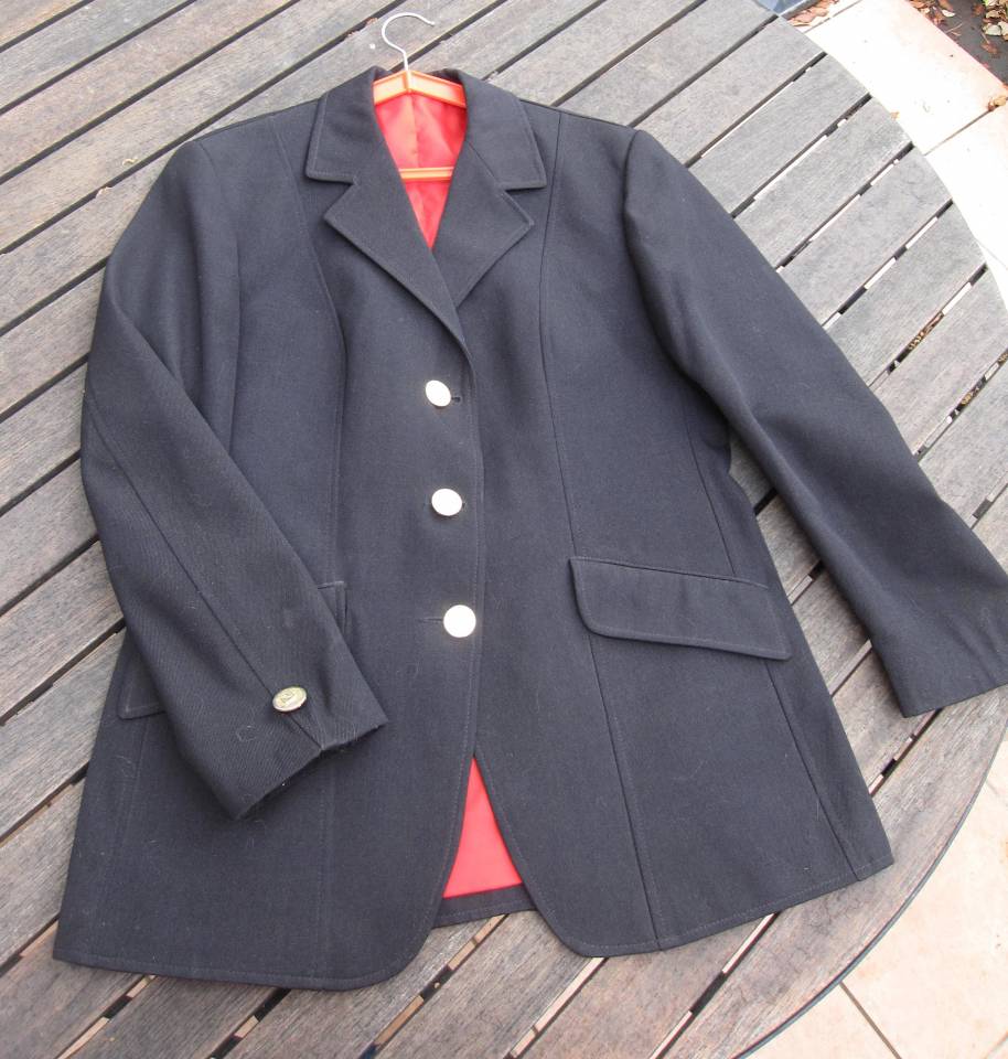 Doublure rouge, boutons dorés avec tête de cheval gravé.