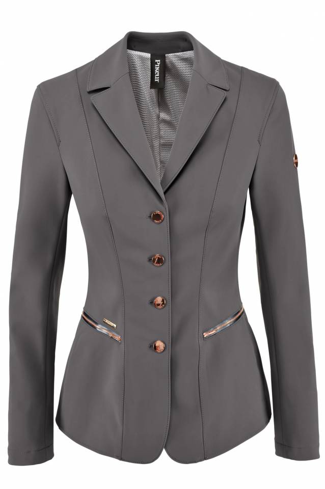 Veste équitation jumping Pikeur Paulin. Couleur grise et boutons rosés. Annoncé T40 mais taille plutôt T38. Parfait état, mis3me 4/5 fois.