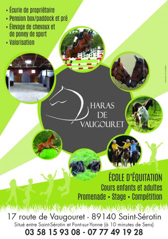 Le Haras de Vaugouret une écurie située en bordure de forêt, à 10 min de Sens et 30 min de Fontainebleau, il a été entièrement réhabilité pour le bien-être de nos compagnons. Il est situé entre les communes de Pont sur Yonne et Saint Sérotin; Écurie familiale et conviviale, nos installations peuvent accueillir tous les passionnés d'équitation que ce soit pour le sport ou pour les loisirs.