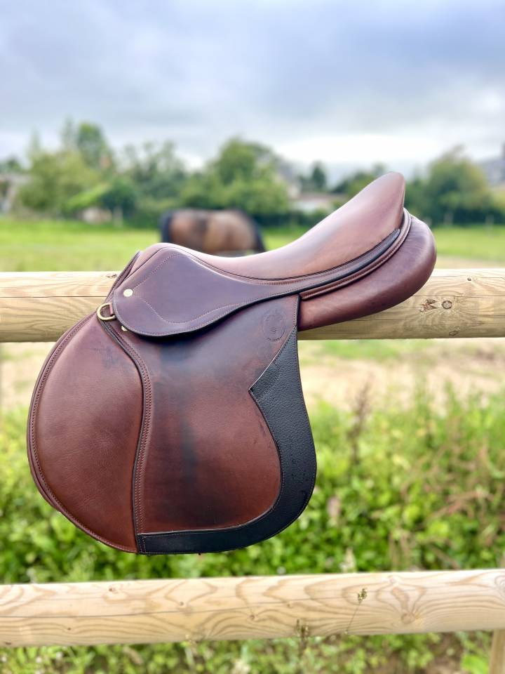 À vendre : Selle d’obstacle Jean‑Luc Maurel M23 – 1ère main – 950€ (visible en Normandie / livraison possible) 🔹 Modèle : M23 de la Sellerie Maurel, référence ART0000077 – finition marron doublée veau, en taille 17,5 " (taille M) 🔹 Discipline : obstacle / polyvalente avec siège semi‑plat offrant contact, liberté et engagement du bassin très appréciés en parcours ou entraînement ✔️ Atouts de cette selle * Fabrication artisanale française : arçon taillé sur mesure, panneaux en mousse à mémoire de forme (21 densités) pour absorber 90 % des ondes de choc et favoriser la répartition du poids cavalier‑cheval. * Proximité et souplesse : absence de taquets pour une plus grande liberté de mouvement et un ressenti direct avec le cheval * Confort optimal du cheval : ouverture d’arcade plus large, panneaux intégrés souples, excellente adaptation morphologique ℹ État : * Utilisation pendant 6 mois seulement * Très légèrement abîmée à l’arrière du siège : une rayure discrète visible. * Fourni sans étrivières 💶 Selle achetée neuve 4200€. Aujourd’hui, elle est à vendre seulement 950€ pour un départ rapide. 📩 Contact & infos * Photos supplémentaires & facture disponibles sur demande. * Contactez-moi par message ou au téléphone pour plus de renseignements