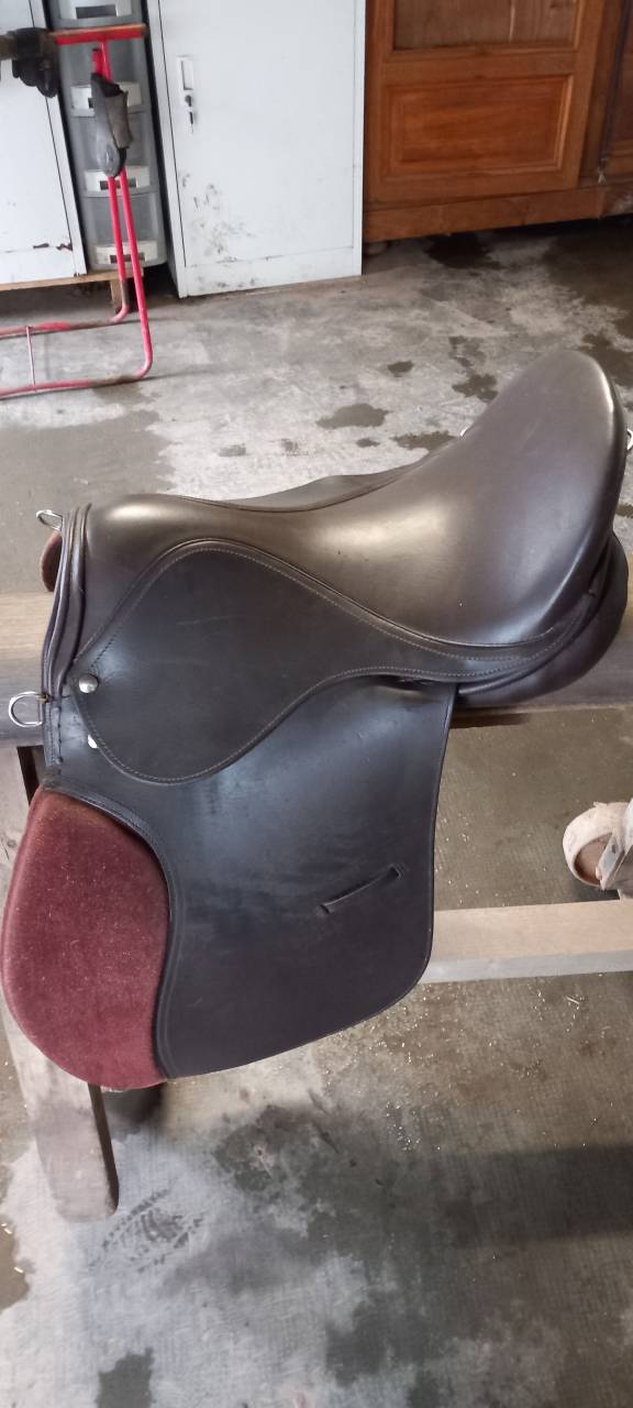 Vend selle taille 17,5 pouces en très bonne état de couleur marron. Il y juste petite griffure au niveau du pommeau et le frottement d'une étrivière.