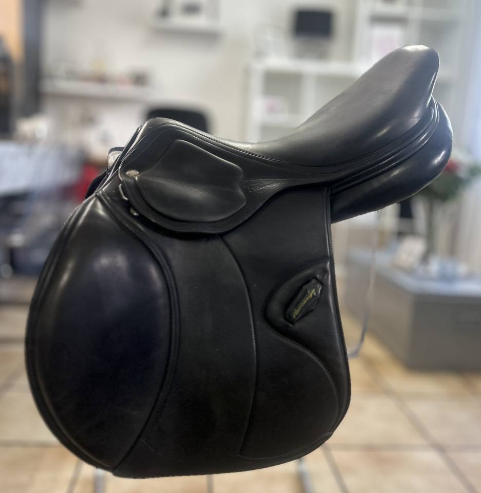 Selle de saut Amerigo DJ Pinerolo Jump, taille 17,  noire, très bon état. Vente car ne va pas sur mon jeune cheval.