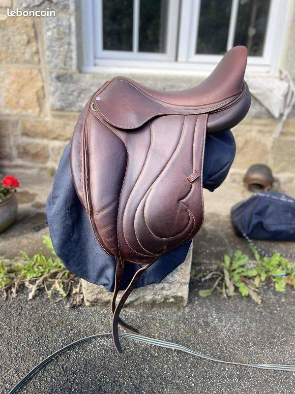 Je met en vente une selle Antares Alliance  semi creuse veau de taille 17.5 pouce, avec panneaux plats pour plus de contact,  en très bon état.