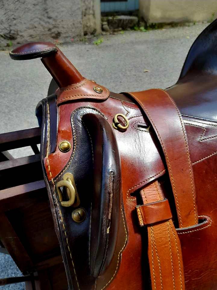 A vendre selle Australienne complète et en très bon état peu servie et entretenue régulièrement en 17.5 pouces, confortable et sécurisante en extérieur.