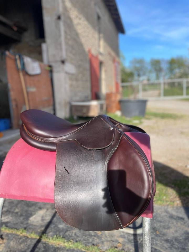 Vends selle Butet année 2024 marron aigrene avec sangle petite bavette et étrivières neuves. Très Bon état. réf taille 275 P 175-25/ S MOS BEF
