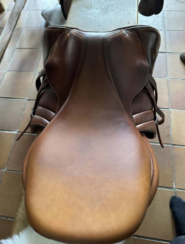Selle en très bon état, peu utilisée : elle appartenait à un cavalier débutant qui a cessé l’équitation en 2017. Depuis, elle n’a plus servi et a été conservée dans de bonnes conditions.