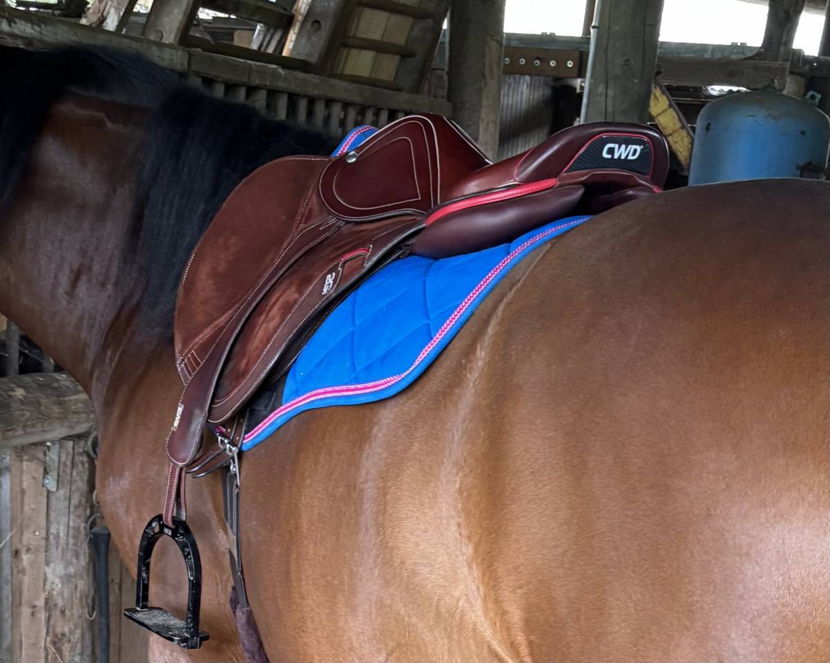 Je vends ma selle CWD 2gs mademoiselle , de 2021. Achetée neuve . Cuir de veau doublée buffle . Vendue avec étrivières CWD. Taille 17,5 siège plat orientée obstacle.  Très peu servie .