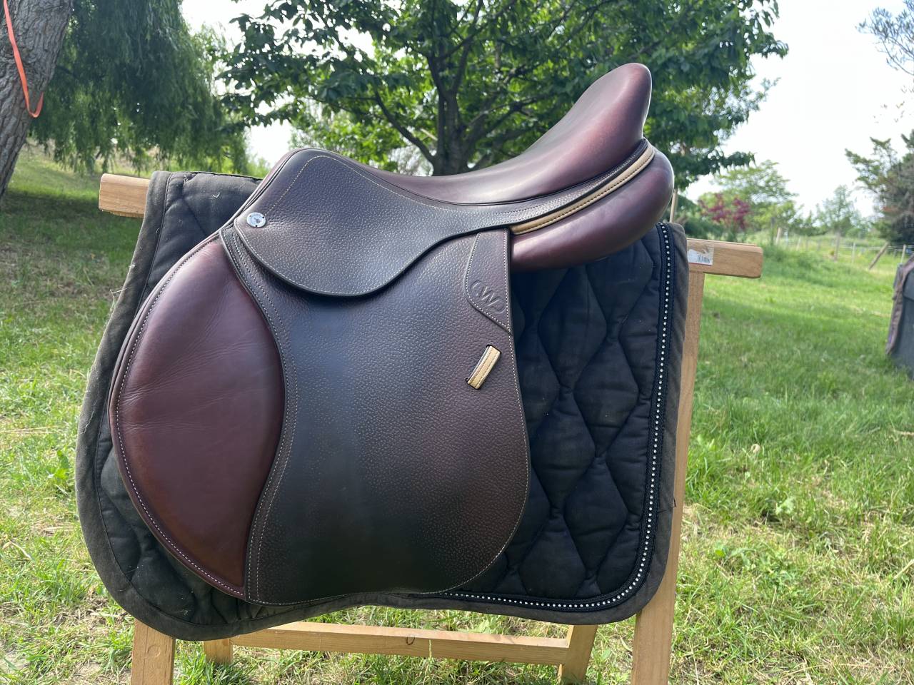 Vends très belle selle CWD SE02 de 17,5 pouces, datant de 2021, quartier 3C donc pour grands cavaliers ! À titre indicatif, je mesure 1m77. La selle était adaptée à ma jument, ps avec un garrot bien sorti, dos court et fin; ouverture d’arcade normale.