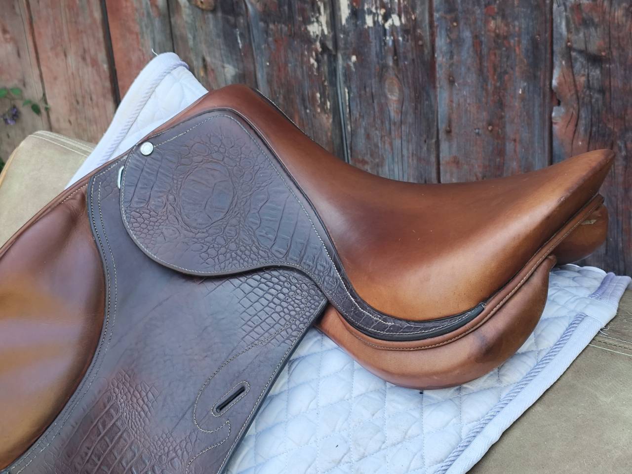 • Selle de CSO 17,5" en cuir gravé croco (pièce rare)