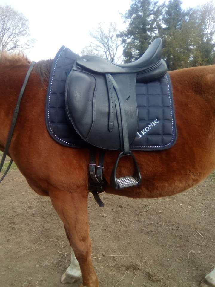 Vends selle de dressage servie 6 fois de marque ICONIK. Vendue sans sangle,etrivieres et étriers.