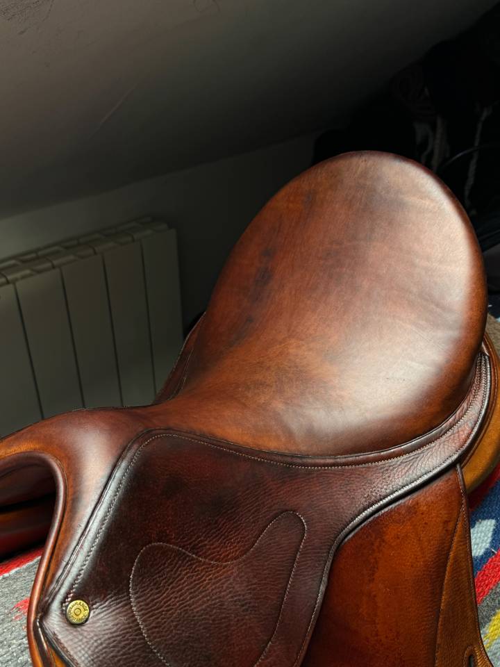 La sella è in ottime condizioni, nessun difetto da segnalare, albero ok, imbottitura ok, seggio ok, cinghie del sottopancia ok, cuoio ok, coltellino ok, fibbie ok.