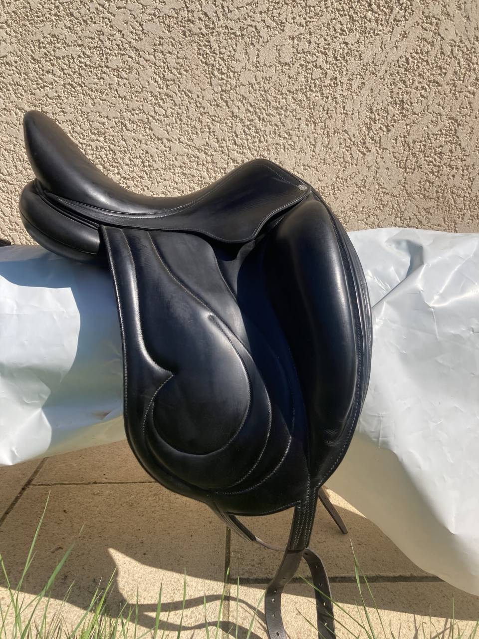 Vends selle Antares dressage 17’ quartiers 3R, siège creux pour cheval pas trop large d’épaules, très bon état ne fait pas son âge, avec sangle, étrivières et housse Antares. Essai possible à proximité de Pourrieres 83.
