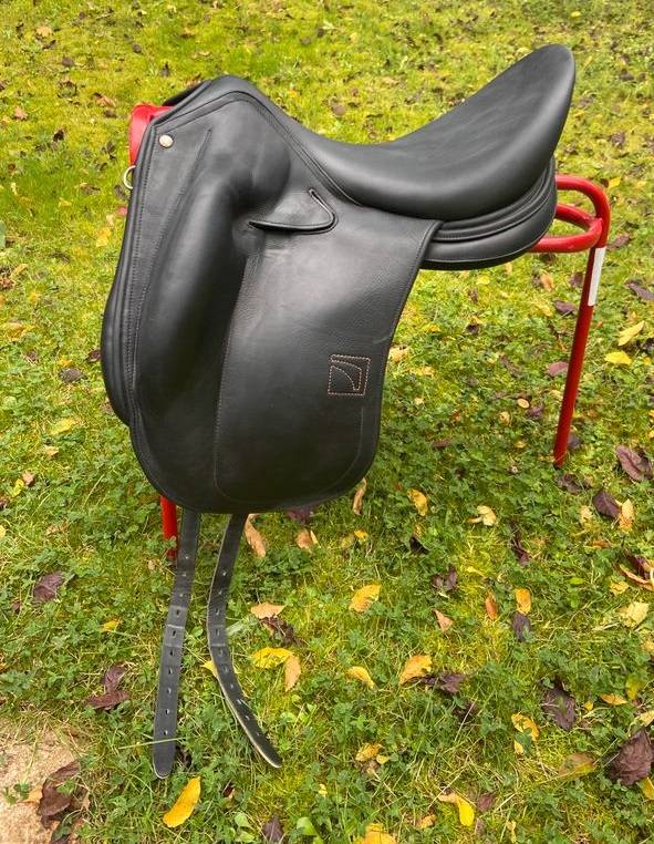 Selle de dressage Childeric buffle noir, année 2023, modèle DLP, mono quartier, taille 175, première main, acheté neuve 5100 € en Août 2023 (facture disponible) vendu 3200 € car ne convient plus à mon cheval. État impeccable. Vendu avec sa housse.