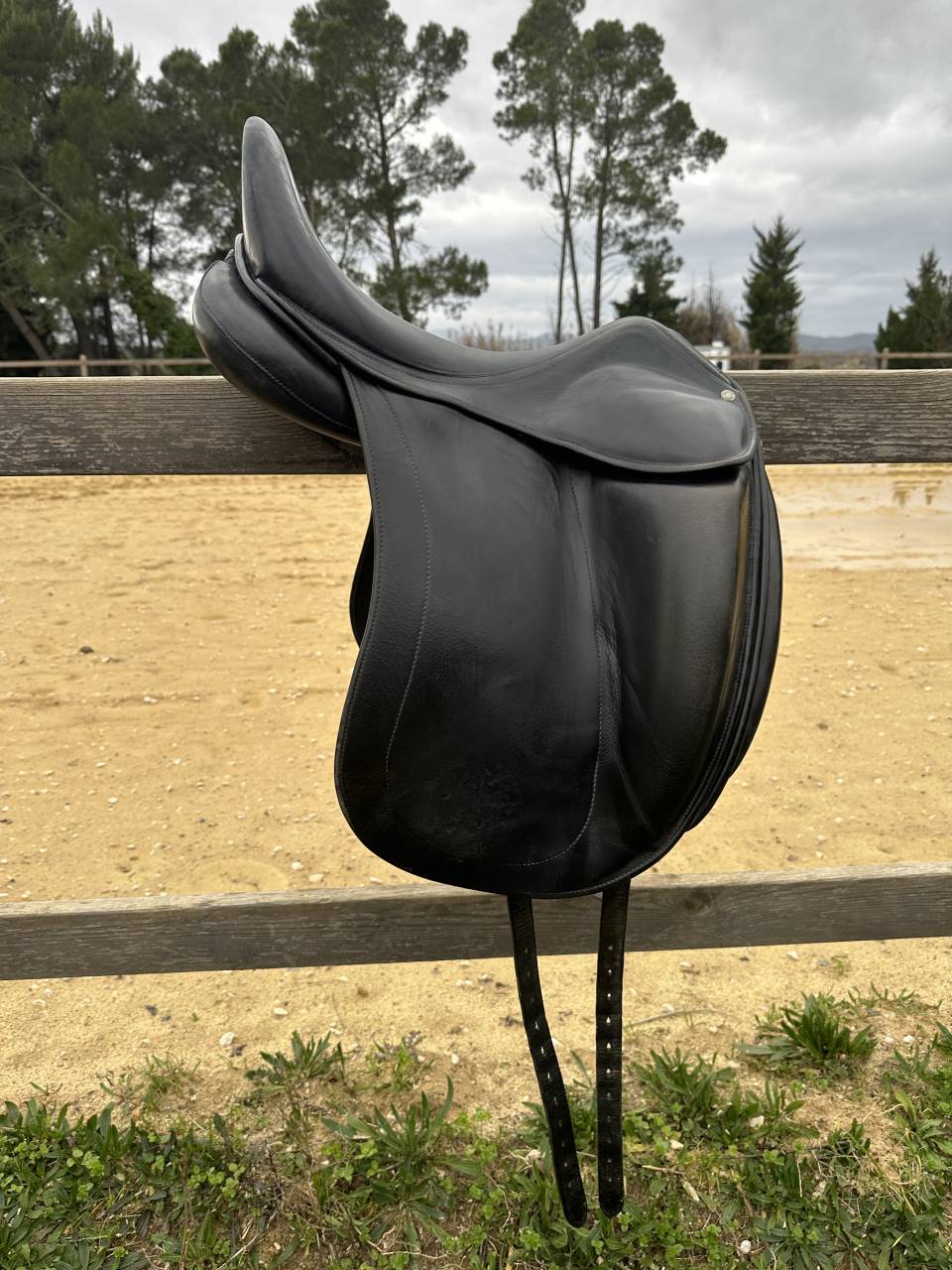 Selle de dressage de la marque Childeric, modèle DGP siège creux taille 18p. Selle très confortable, vente à regret car ne convient pas à ma nouvelle jument.