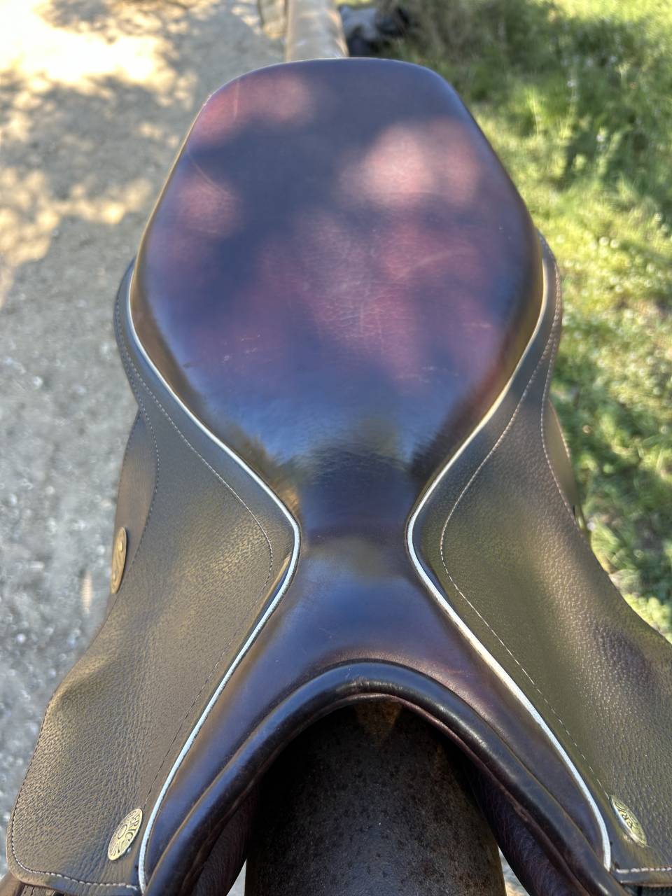 La selle est en très bon état brun foncé avec un liseré blanc.