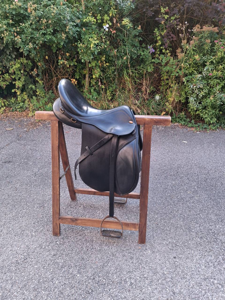 Selle Eric Thomas Aachen 17' achetée en 2012. A servi jusqu'en 2018 puis a été stockée en maison, graissée régulièrement.