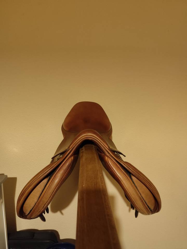 Bonjour, je vends ma selle Eric thomas fitter mixte. Cuir marron clair siège de 17 pouces et arcade changeable. Très peu servi pas cassé, parfait pour les dos court , très confortable. Vendue nue avec housse et l'arcade nécessaire.