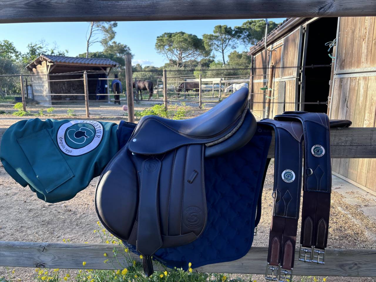 Vendu avec Housse de selle (avec intérieur polaire et passage pour étriers); sangle anatomique confort avec mousqueton sécurisé (neuve = 240€) taille 120cm + sangle bavette (neuve = 340€) taille 130cm.