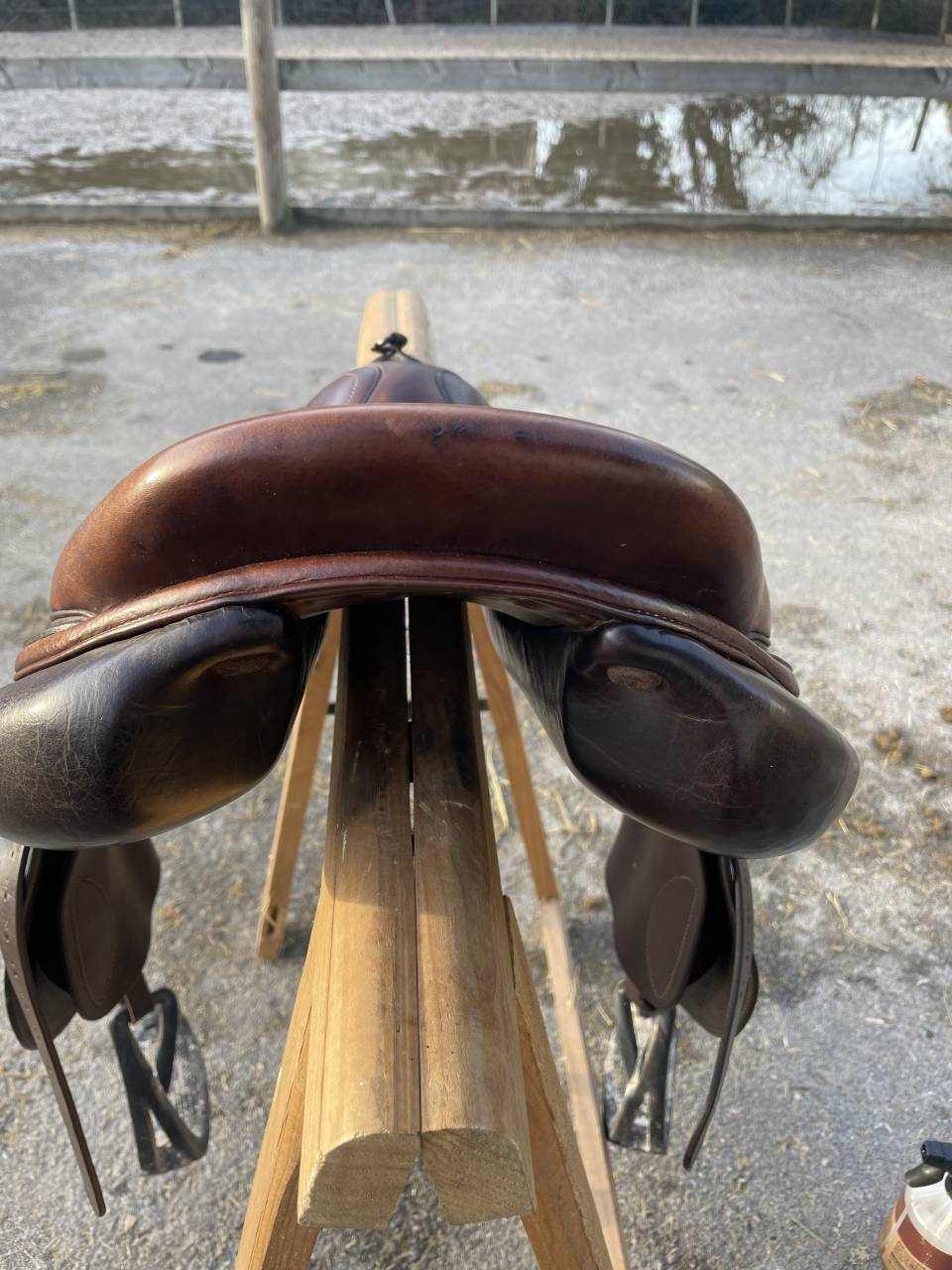 Selle Séoul couleur châtaigne tour veau 2A taille 16,5 . Vendu avec avec étrivières et housse . Essai possible via Equirodi ou du côté de la Baule
