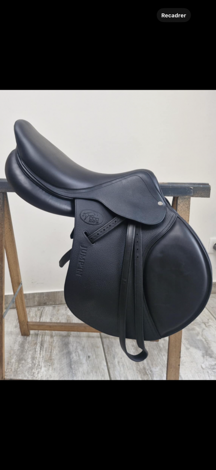 Vend ou échange selle Jump'in 2024 SP2 noire taille 18 avec étrivières et housse de selle. Selle neuve jamais utilisée, facture d'achat disponible. Échange contre van, cheval, ou poney.