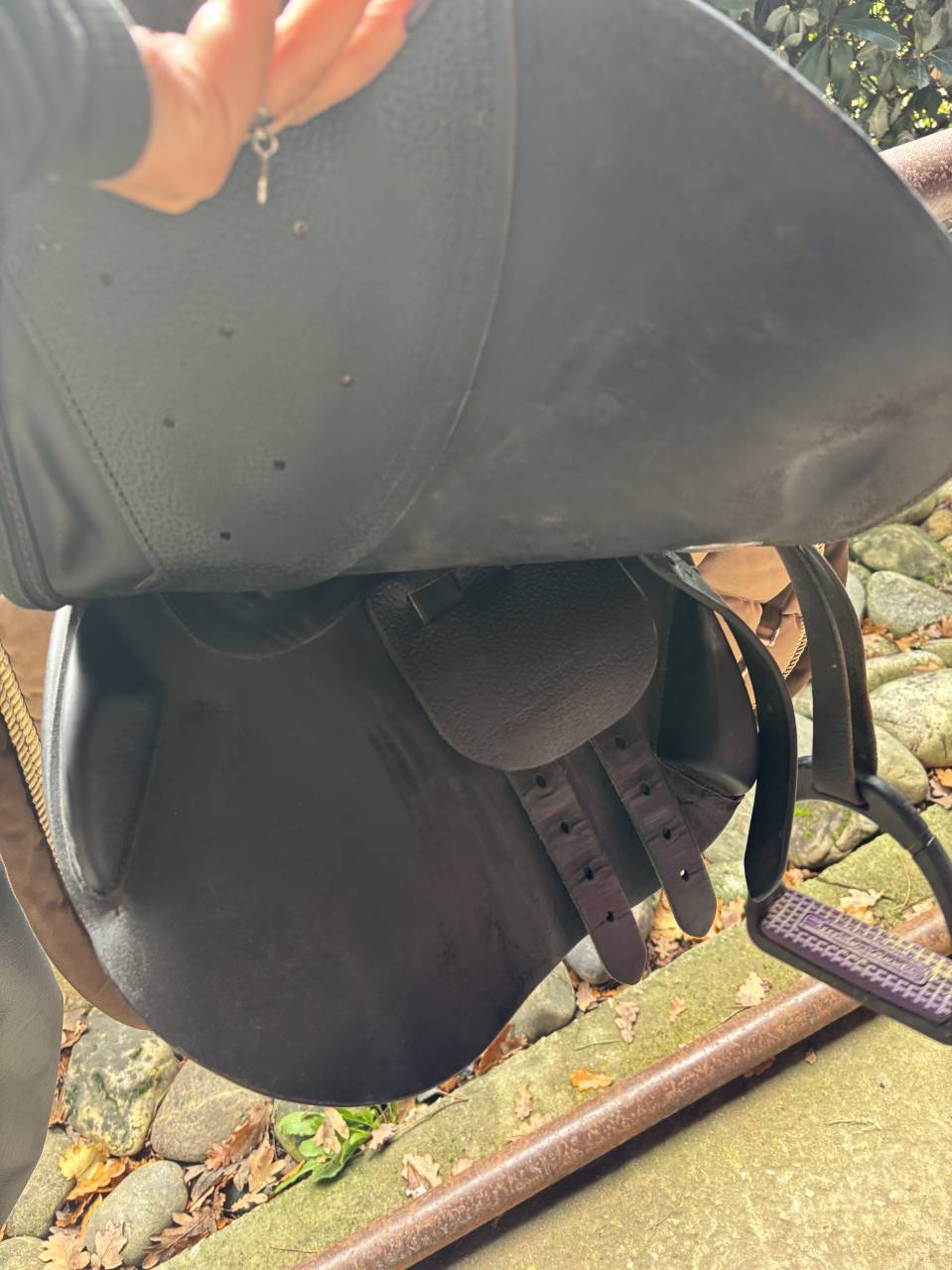 selle meyer 16,5 mais convient à du 17 en cuir noir graine c'est un acte 2 obstacle. Toujours bien entretenu et correspond à beaucoup de Chevaux en sachant que je suis cavalière de valorisation donc à vu pas mal de chevaux de différentes morphologies.