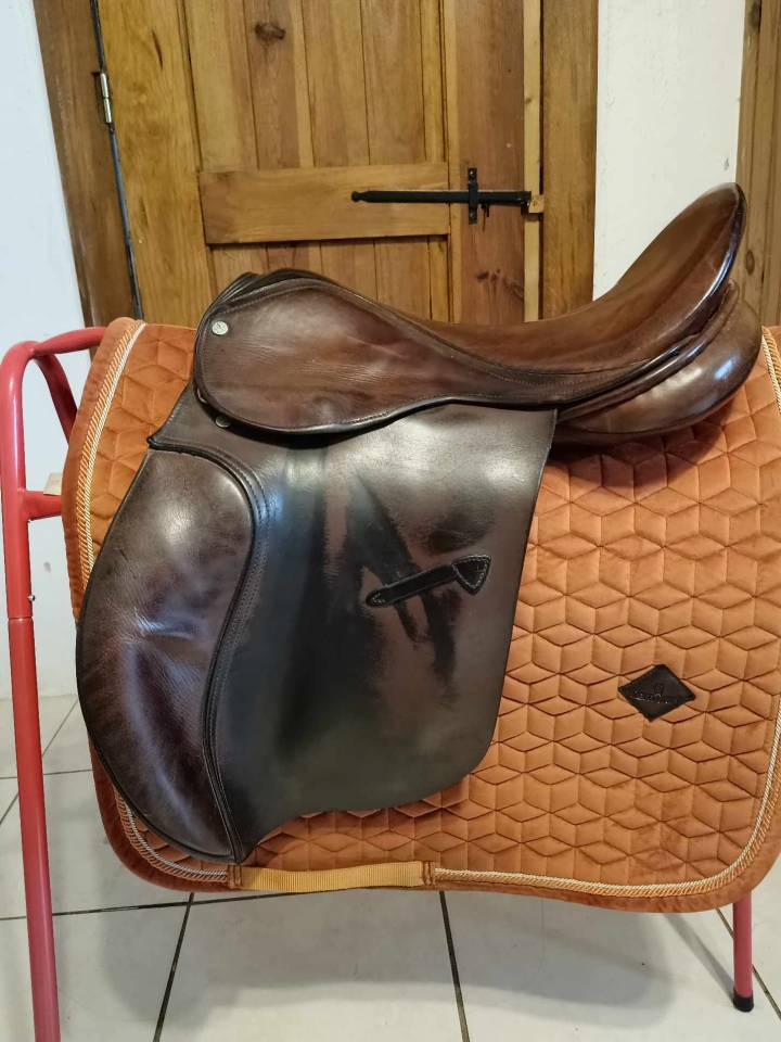 Selle pour faire tout disciplines.  Les contre-sanglons sont en bon état. Elle n'est pas toute récente mais elle est en très bon état et tout à fait fonctionnelle.
