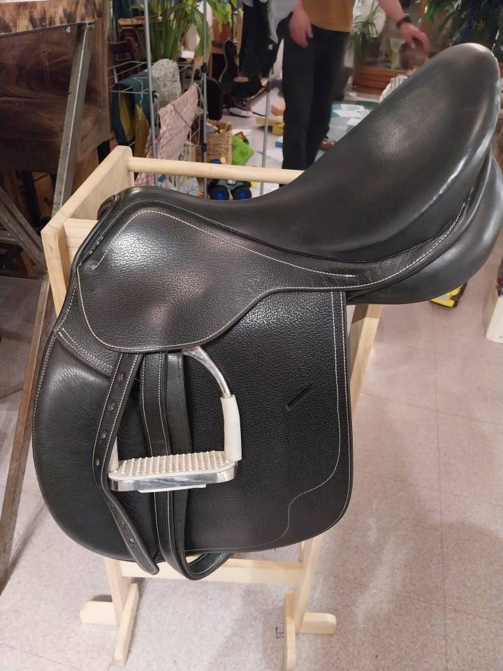 Je vends ma selle mixte en 17 pouces noire avec des belles broderies blanches. Très peu utilisée. Achetée neuve à 800€ nue. Je la vends a 350€ avec sac de transport, housse, étrivières, étriers, sangle (145 je crois).