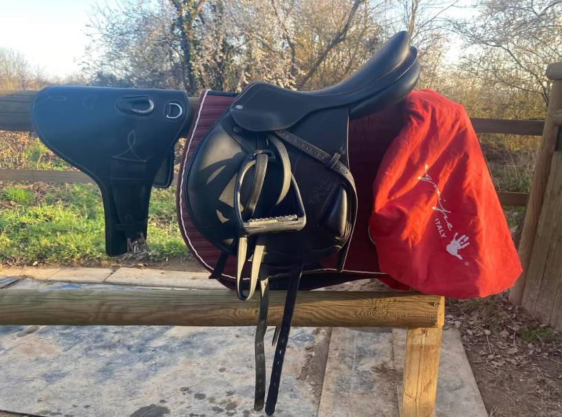 Vendu avec ses étrivières, sangle bavette et sa housse d'origine.