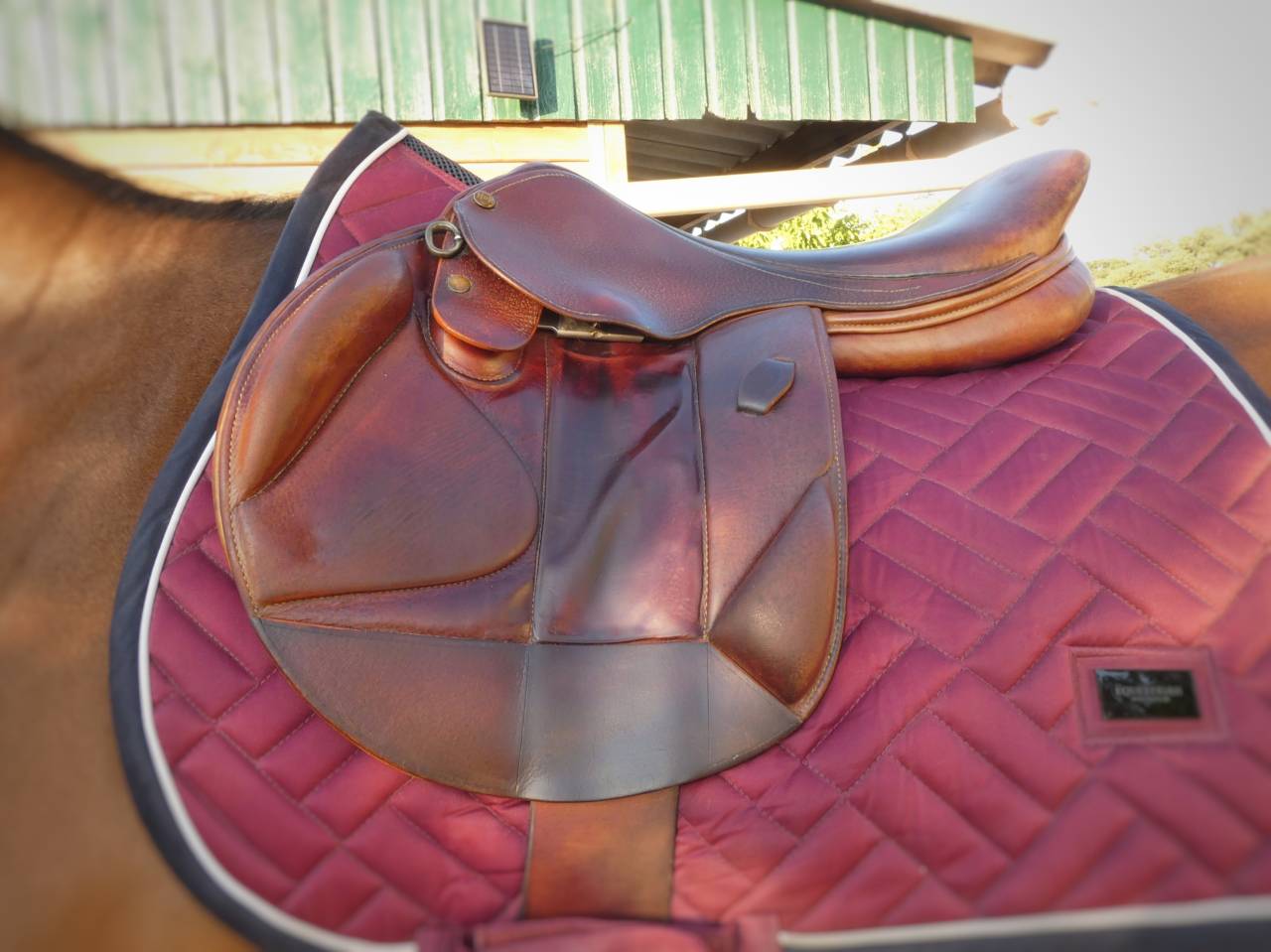 Selle monoquartier adaptée pour un poney D à un petit cheval fin. Place bien le bas de jambe, on peut travailler sur les 3 disciplines avec. Arcade et arçon ok.