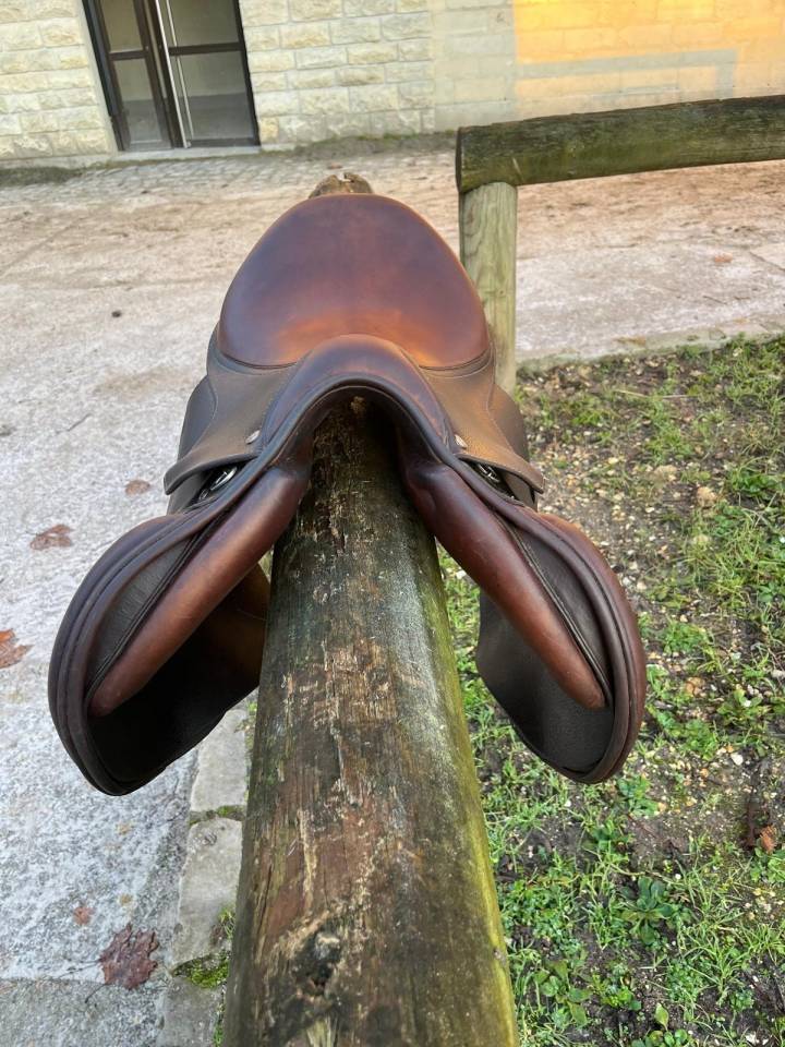 Selle marron en 16;5 quartier 1A, siège semi-creux. Convient double poney et cheval.