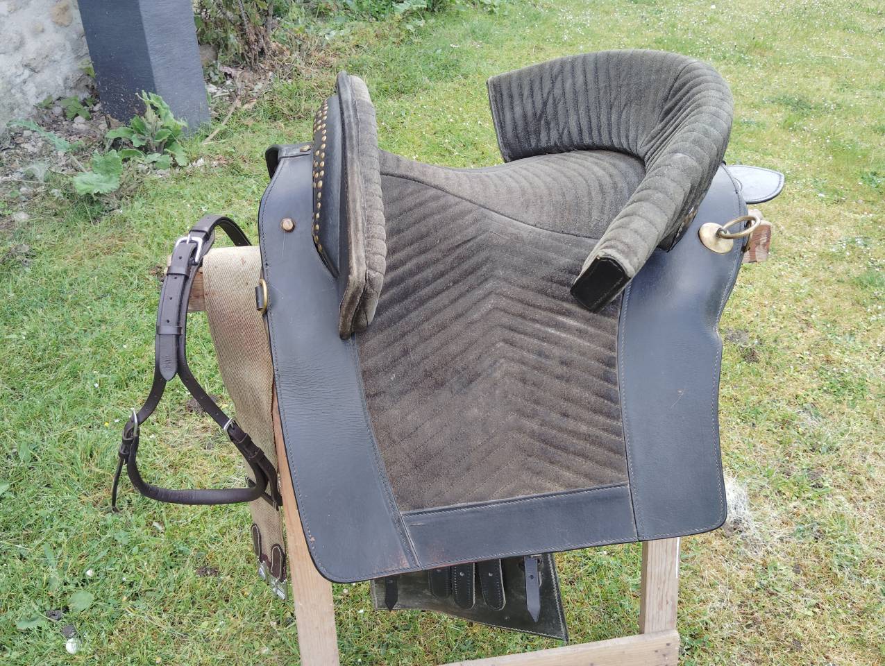 Allait sur un cheval rond sans garrot. Arcade large. Voir mesures Éraflure voir photo sous un quartier frottement avec étrivières que je n'avait pas vu ...