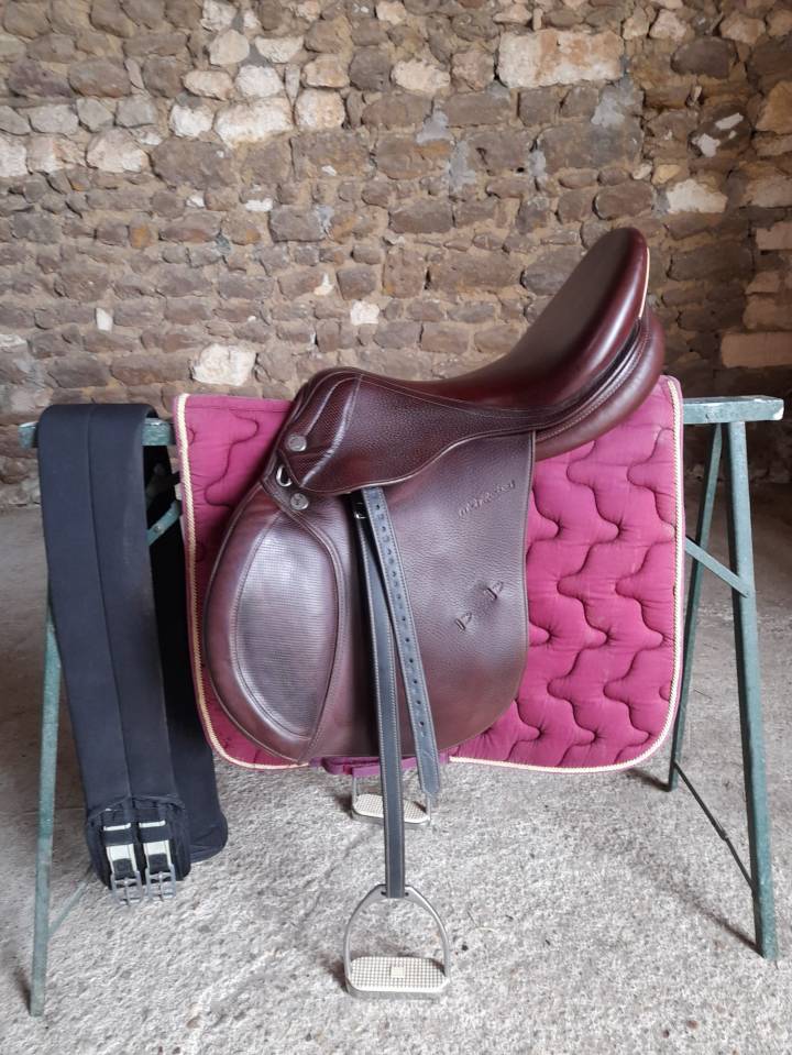 Selle mixte de marque Prestige "Michel Robert" couleur tabac taille 17 quartiers 2A+ de 2010 ouverture 33 au niveau du garrot, très peu servie vendue complète.