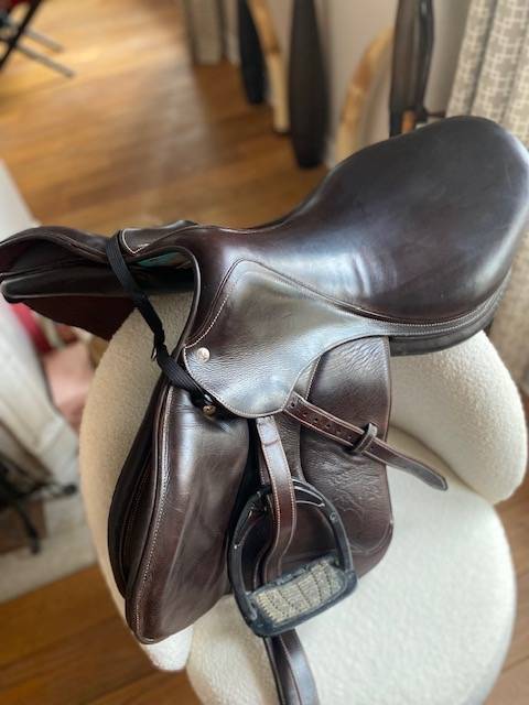 Selle Voltaire en parfait état, double quartier. Vendue avec sa housse impeccable.Couleur chocolat. Achetée neuve en 2020.