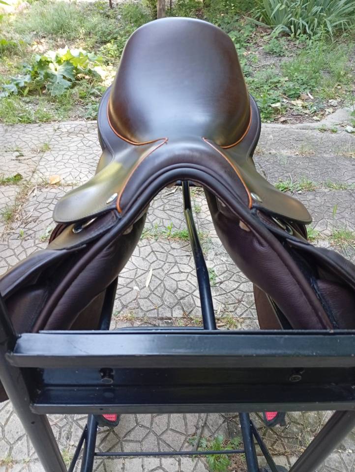 A vendre, très jolie selle mixte cuir Frank Baines Reflex. Taille 16 équivalent à une taille 17 française. 1ère main. Très peu utilisée entre 2018 et 2021.