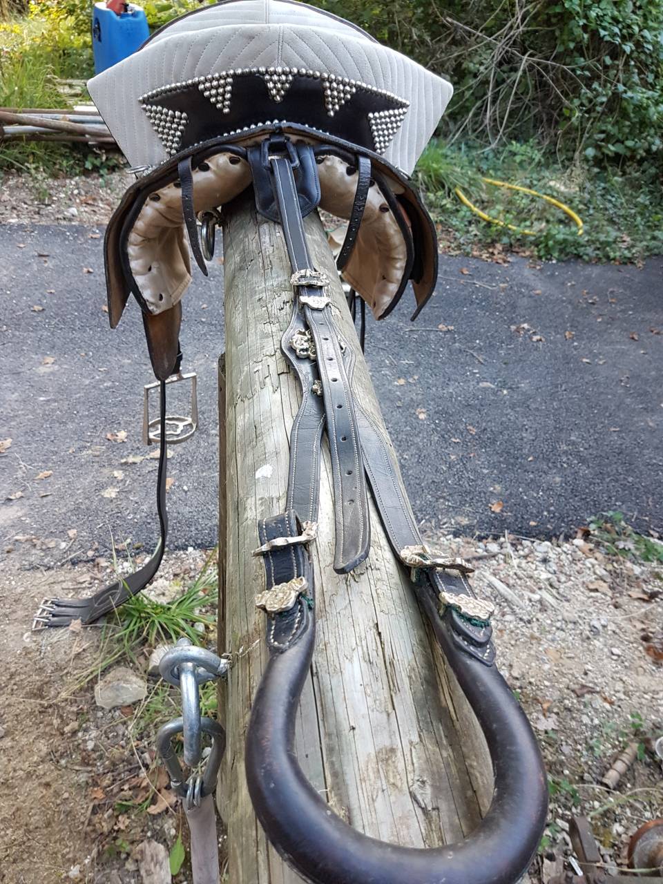 Je vend une magnifique selle portuguaise de fabrication artisanale complète avec la sangle, les étrivières et les étriers portuguais toutes les boucles sont style portuguais et argentées