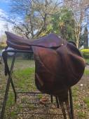Selle Meyer sellier de décembre 2022 taille 17.5" couleur havane En bon état : 1 accro sur le siège et 1 sur le troussequin. Bien...