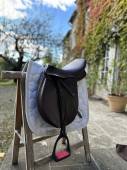Je vends ma selle Zaldi noire modèle Belfort tres confortable. Achetee en 2022. Tres bien entretenue. Arcade d'origine en 32 resserrée en 30.