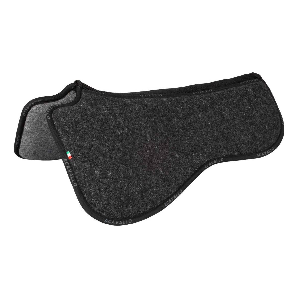 Amortisseur plat Acavallo® en forme de dressage en mousse à mémoire de forme avec garrot profilé et épines d’espacement 3D en feutre la surface supérieure et inférieure.