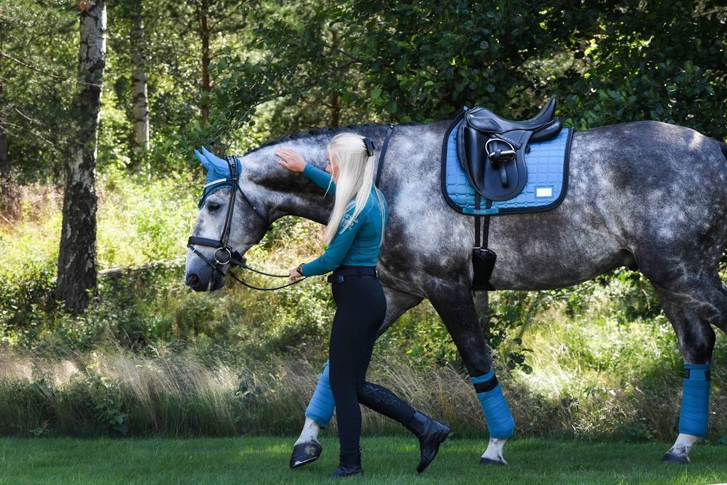 Bandes en matière polaire bleu canard avec scratch satiné noir et logo equito