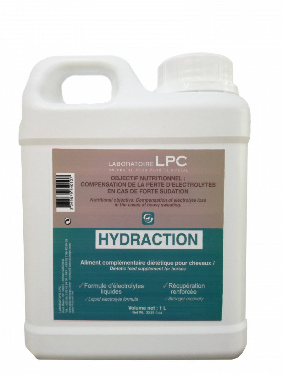 Le bidon Hydraction de LPC est conçu pour répondre aux besoins spécifiques des chevaux lors de périodes de forte sudation. Sa formule d'électrolytes liquides favorise une récupération efficace et rapide, essentielle pour le bien-être de votre monture.
