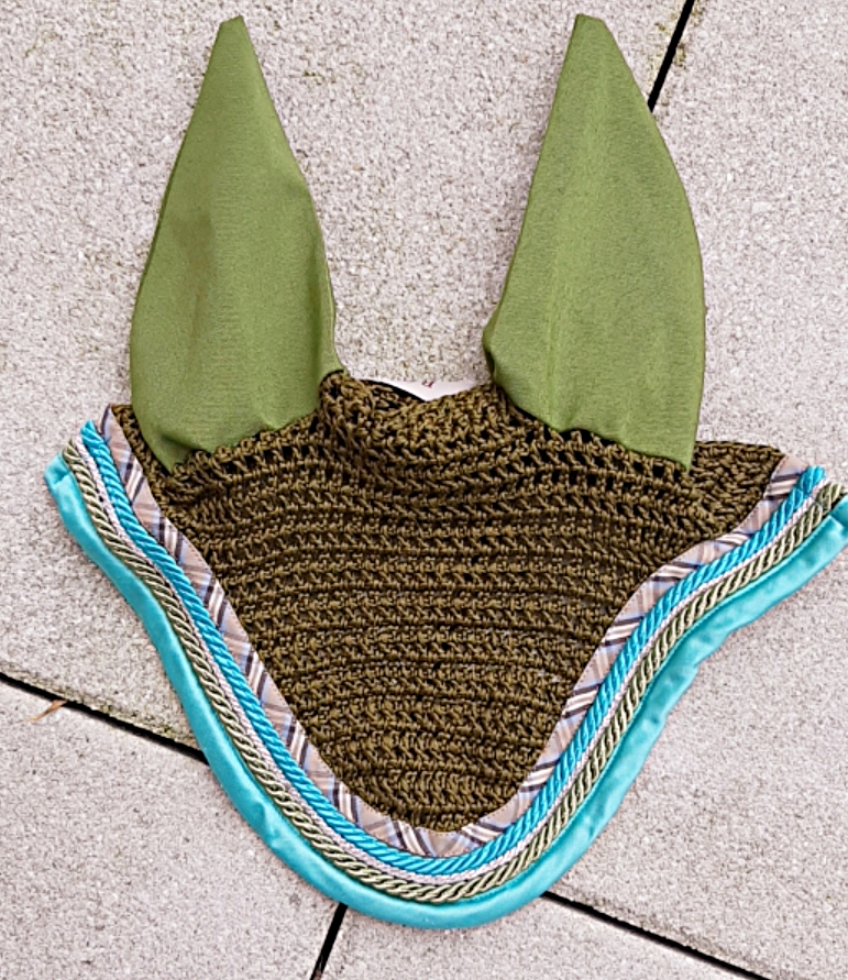 Bonnet anti-mouches Rg Italy - Vert bord turquoise satiné
