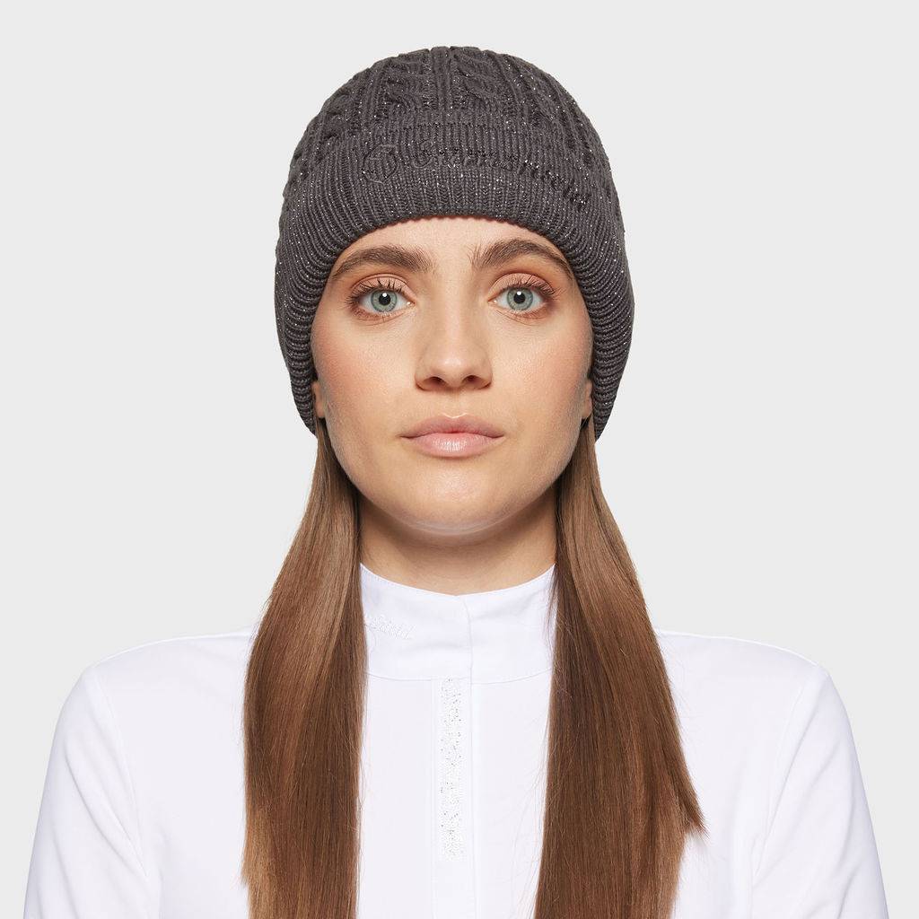 - Bonnet très féminin avec logo brodé Samshield orné de cristaux Swarovskis
