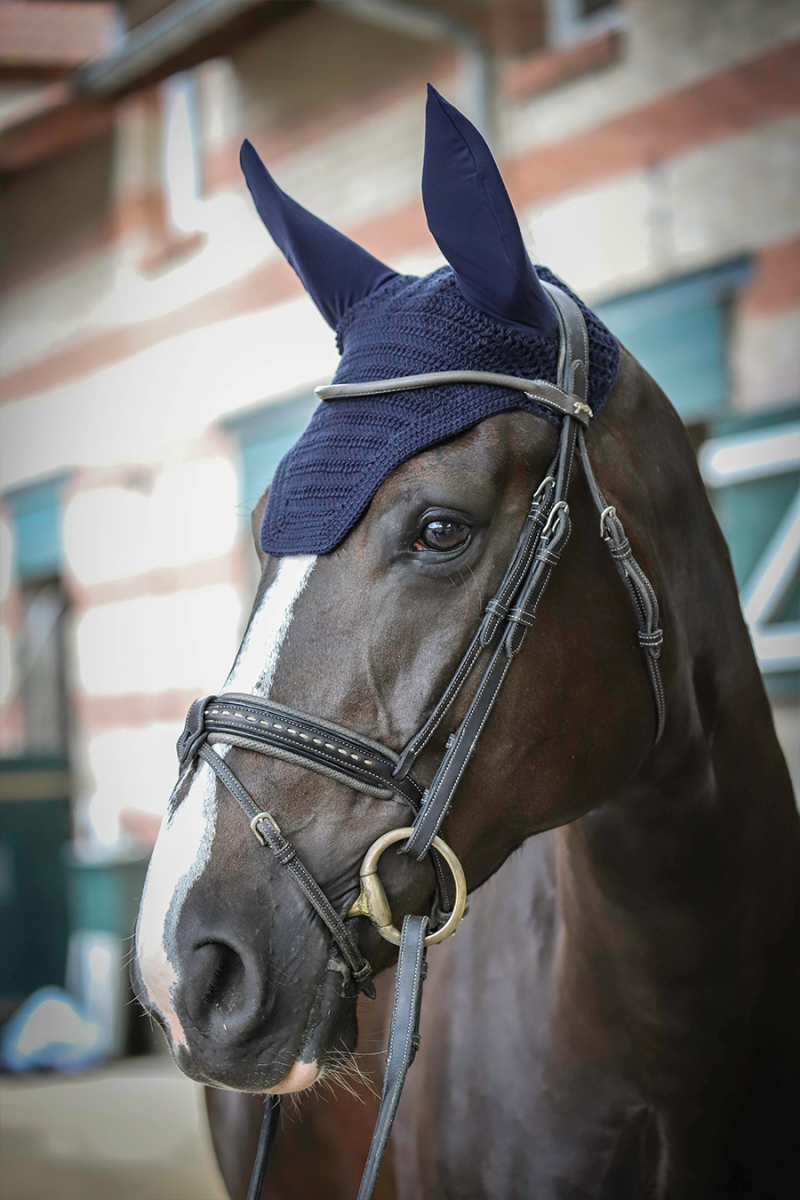 - Un bonnet haut de gamme . Le tissage du bonnet est assez épais et se pose parfaitement sur la tête du cheval.