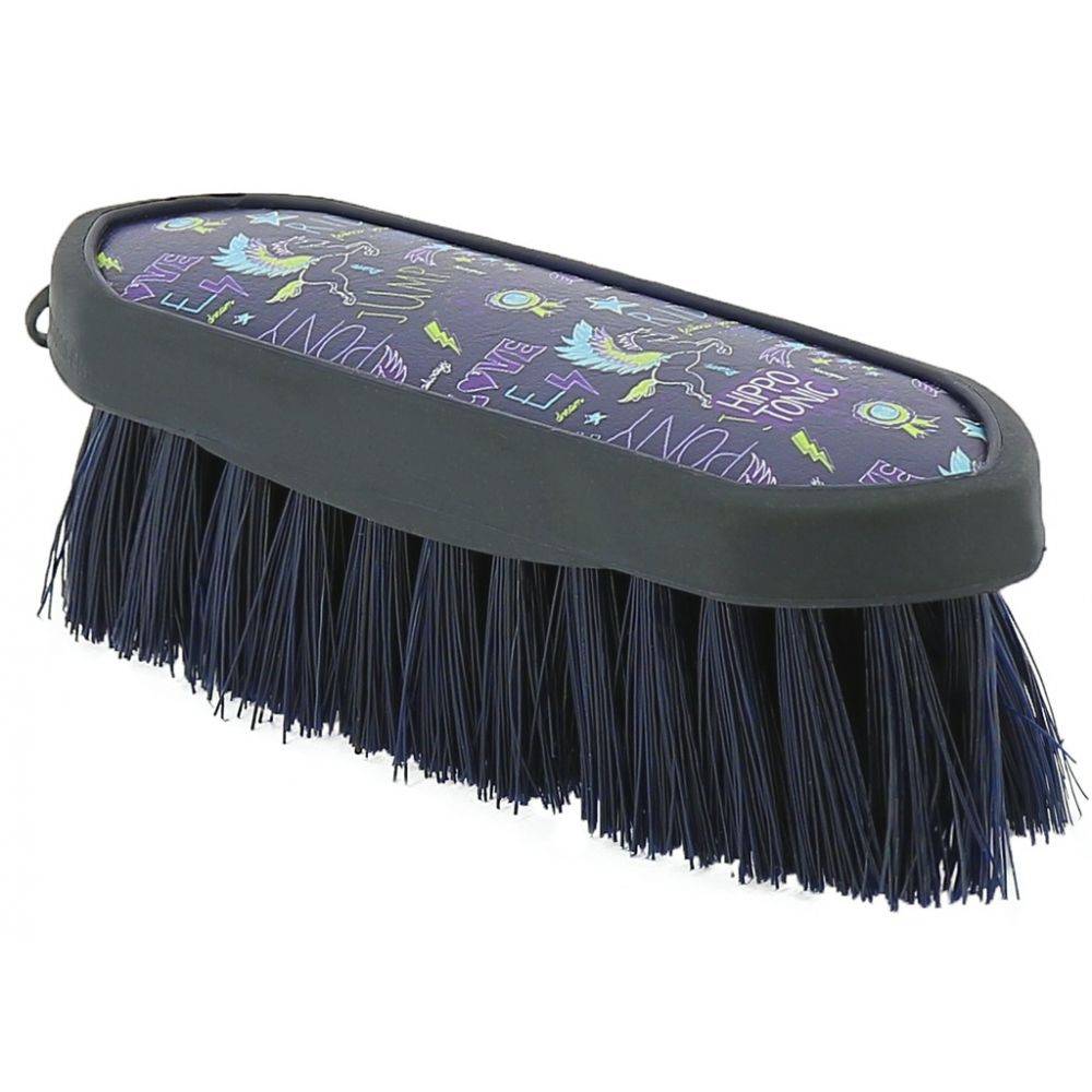 Son dos en polyuréthane effet cuir et ses couleurs joyeuses en font un vrai atout à mettre dans votre boîte de pansage.